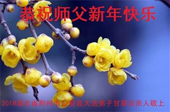 助师正法十九春, 时刻感谢师尊恩; 不盼结束时间到, 只想尽量多救人。 二零一八年腊月二十六 湖北孝感大法弟子恭祝师父新年快乐!