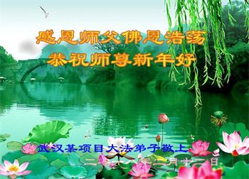 湖北省武汉市大法弟子恭祝慈悲、伟大的师尊:新年快乐!
