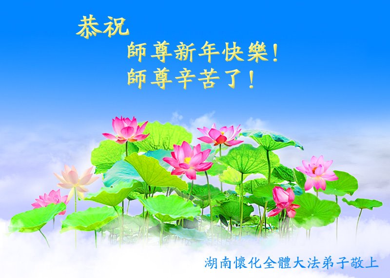 值此新年到来之际,湖南怀化全体大法弟子恭祝师尊新年快乐!师尊辛苦了! 湖南怀化全体大法弟子恭祝师尊新年快乐!