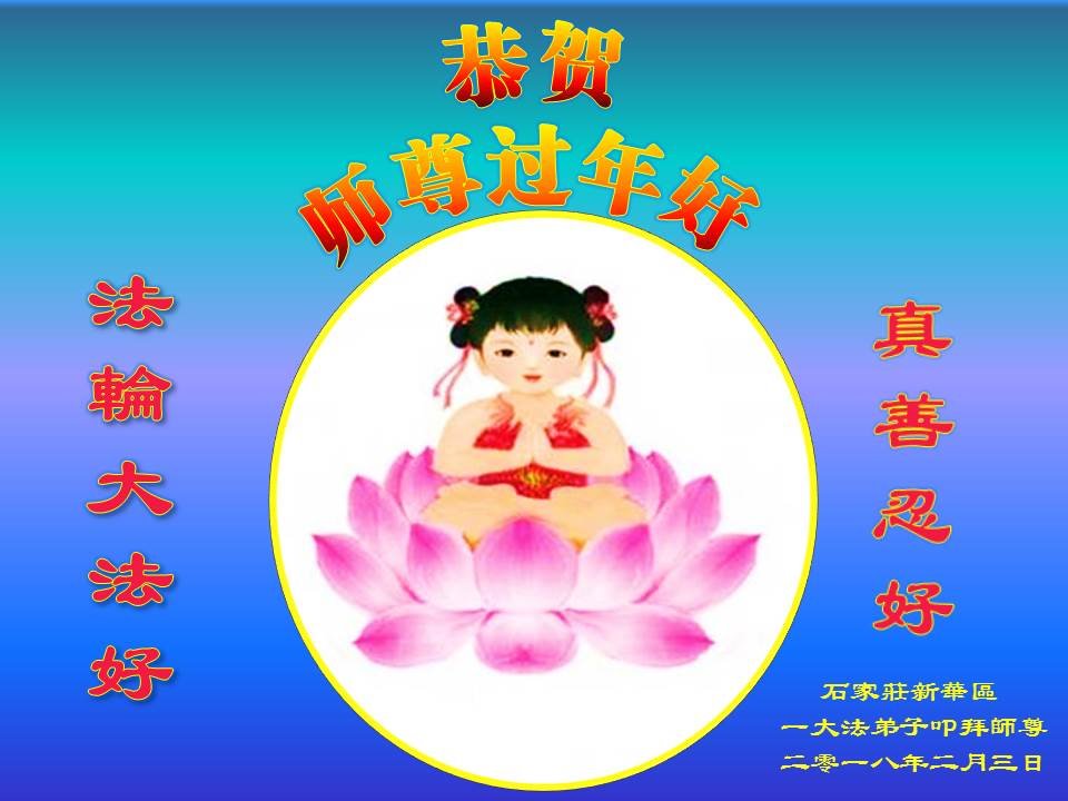 在新年来临之际,石家庄鹿泉大法弟子恭祝师尊新年快乐!谢谢师父慈悲苦度。 河北省石家庄市长安区大法弟子恭祝恩师过年好!