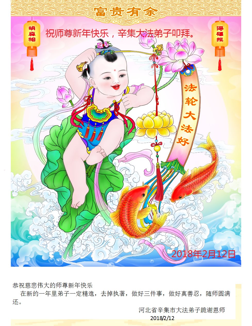 师父您好!弟子在前段时间做的不好,愧对师父的苦度,以后一定要努力精進,做好三件事让师父放心。 河北省石家庄市大法弟子恭祝慈悲伟大的师尊新年快乐!