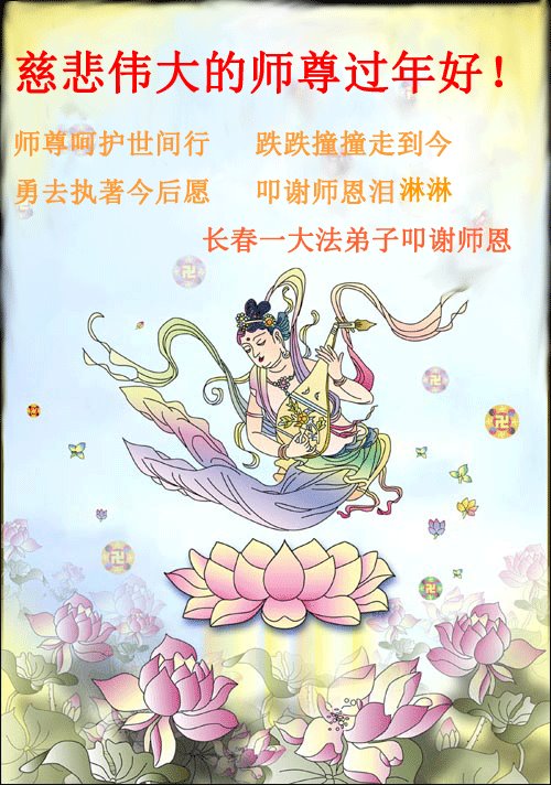 值此新春佳节之际,感恩师尊的慈悲救度,弟子唯有听师尊的话,做好三件事,精進、精進、再精進!以报师恩! 吉林长春市一大法弟子恭祝慈悲伟大的师尊新年好!