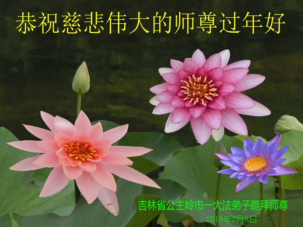 敬请师尊放心,我们一定听师尊的话,在这正法的最后关头多学法、多去人心、尽力做好三件事,多救人! 再次跪拜师尊新年快乐! 吉林省四平市公主岭市一大法弟子恭祝慈悲伟大的师尊过年好!