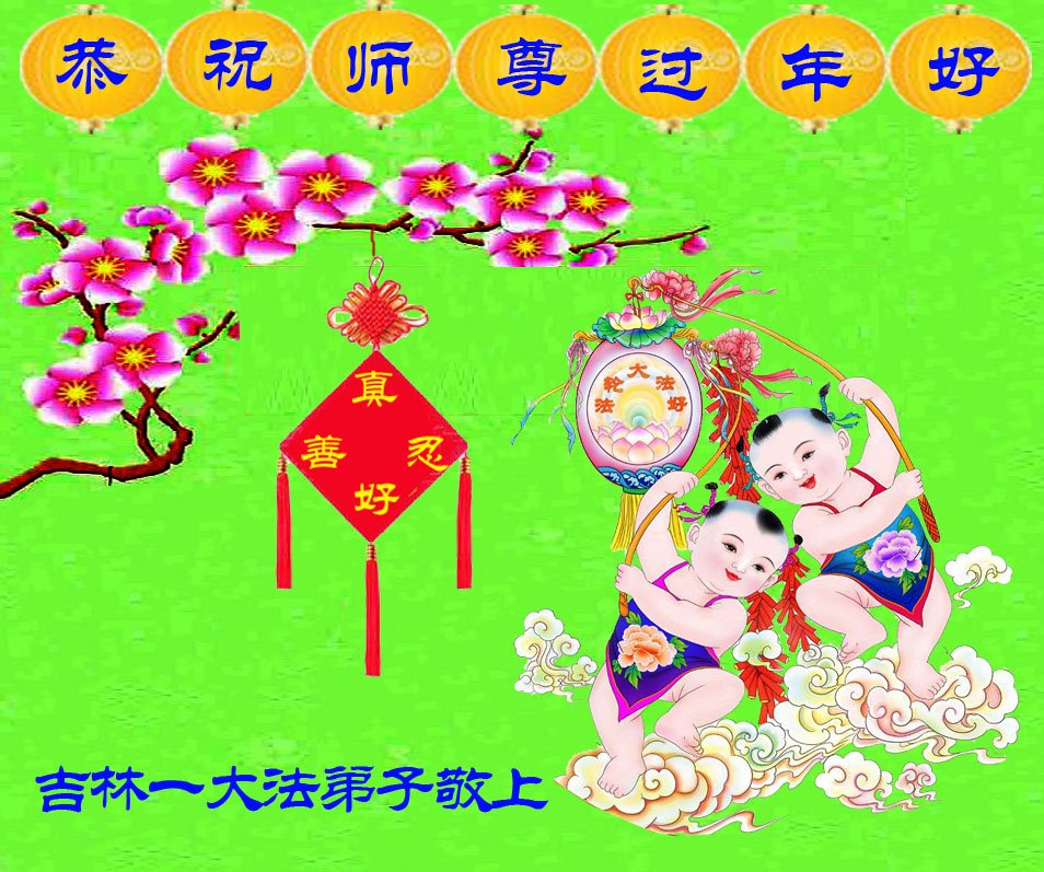 师尊过年好! 吉林省通化市一学法小组大法弟子敬祝师尊新年快乐! 叩拜!合十 吉林省一大法弟子恭祝师尊过年好!