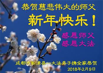 四川成都大法弟子及家人:敬祝伟大慈悲的师父,2018年中国新年快乐!