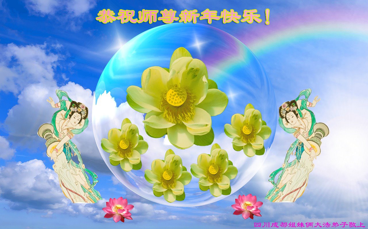 四川成都姐妹俩大法弟子恭祝师父新年快乐!