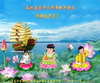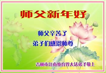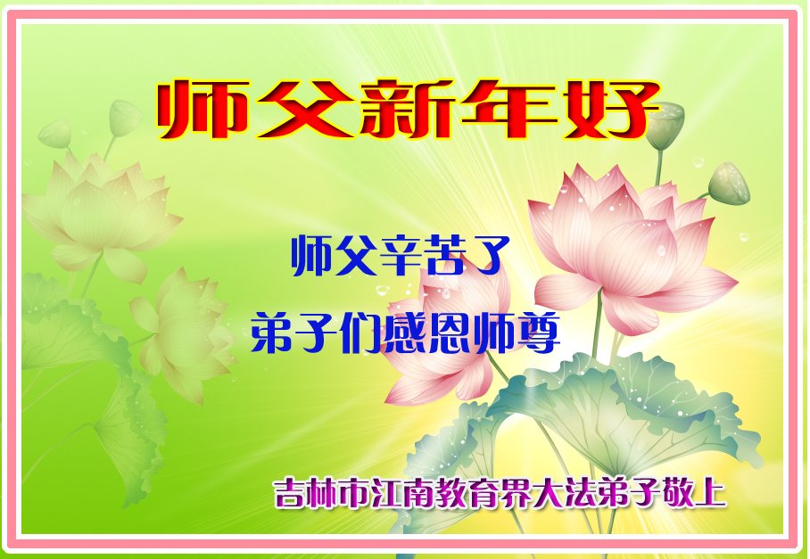 恭祝慈悲伟大的师尊新年快乐!师尊辛苦了,谢谢师尊的慈悲苦度,我们一定做好三件事,时时事事无条件向内找,多救人,圆满随师还。 吉林市江南教育界大法弟子向师尊拜年!恭祝慈悲伟大的师尊新年快乐!