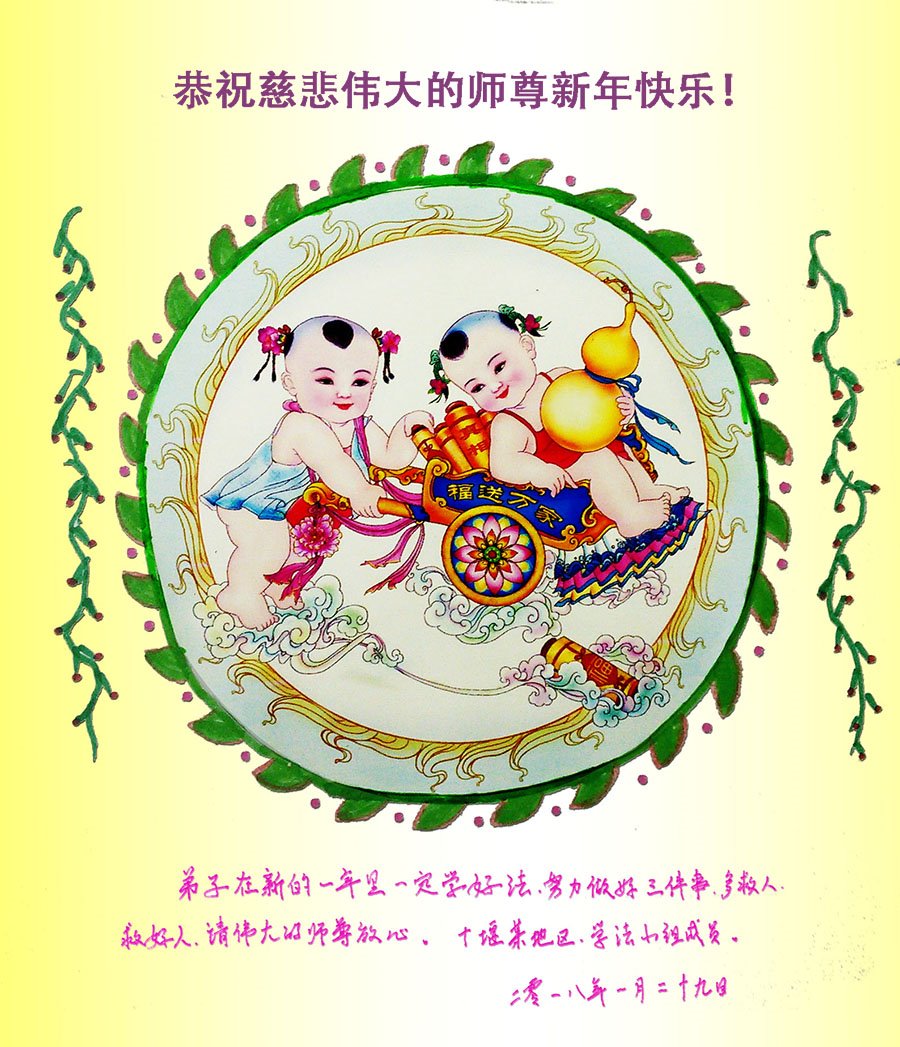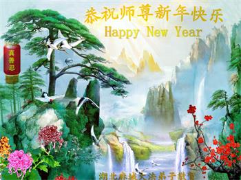 师尊您好!在新年来临之际,在这正法修炼的最后时期,我们一定努力做好三件事,在修好自己的同时多救众生,让师尊少一份操劳,多一份微笑! 湖北省宜昌市枝江市全体大法弟子给师父拜年!祝伟大慈悲的师父新年快乐!