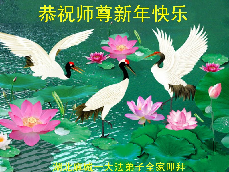 日月流逝旧岁过,寒梅绽放沁清香。在传统佳节到来之际,黄陂区全体大法弟子向慈悲伟大的师父表达最诚挚的感恩,恭祝师父新年快乐! 十八年残酷的迫害,一路走来经历太多,感谢师父时刻呵护,感谢师父不断点悟,增加了我们的正念。没有师父的保护,我们寸步难行。证实法的时间和机缘有限,弟子们一定坚持努力做好我们该做的三件事,去人心,去执着,多救人。破除邪恶的间隔,圆容好整体,全盘否定旧势力的一切安排,只走师尊安排的路,兑现自己的誓约。 在新的一年里,我们会继续用心做好三件事,并根据自己的特长,用不同形式多救人。珍惜和师尊同在、亘古不遇的再也不会有的修炼机缘,圆满随师还。 再次向慈悲伟大的师尊表示衷心的祝愿:祝师尊新年愉快! 湖北省武汉市黄陂区全体大法弟子叩敬!合十! 湖北省荆门市钟祥市全体大法弟子恭祝师尊新年快乐!