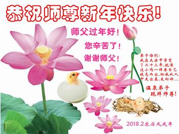 自师父传法以来,我们都沐浴在师父慈悲的佛恩中,在当今这个人心败坏,道德下滑的社会,您为了洪传大法,救度众生,吃了无数的苦,遭了无数的罪,为救苍生,几乎耗尽了您的所有,为了让世界上所有的众生都能得到这部高德大法,费尽心血,我们能成为大法弟子深感荣耀。为了配得上这个荣耀,只有听师父的话,多学法、学好法、做好三件事,修成无私无我,先他后我的正觉,兑现誓约,圆满回归。 湖北省黄冈市麻城市大法弟子恭祝慈悲伟大的师尊新年快乐!