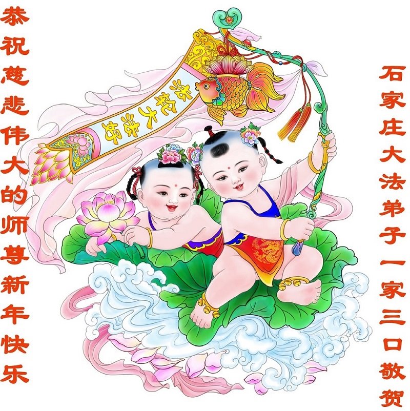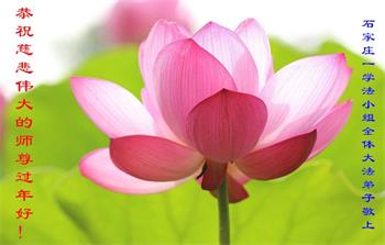 值此在中国新年到来之际,我们学法小组给师父拜年!恭祝师父新年好!恭祝师父新年快乐! 河北石家庄市长安区光华路大法弟子携全家亲人祝慈悲伟大的师尊新年快乐!