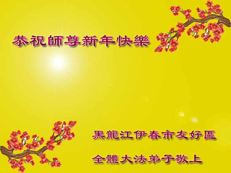 感谢师尊的慈悲苦度,新的一年弟子要实修、真修自己,严格按真、善、忍的标准要求自己。叩谢师尊! 黑龙江省伊春市友好区全体大法弟子恭祝慈悲伟大的师尊新年快乐!