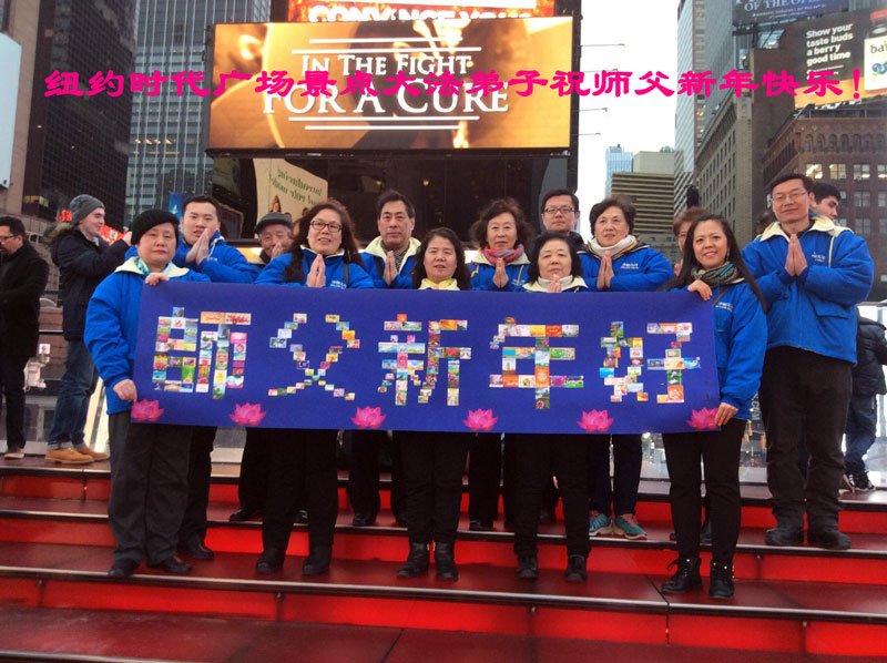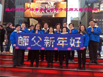美国纽约时代广场景点大法弟子祝师父新年快乐!