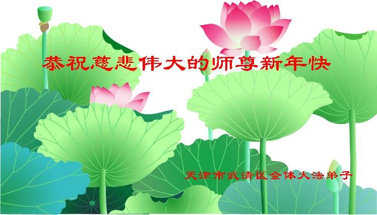 尊敬的师尊: 天津市河东区大法弟子携全家恭祝您,新年快乐!以后的日子里我们要努力精進,做好三件事,救更多的世人。 天津市河东区大法弟子及全体家人 天津武清区大法弟子恭祝师尊新年快乐!
