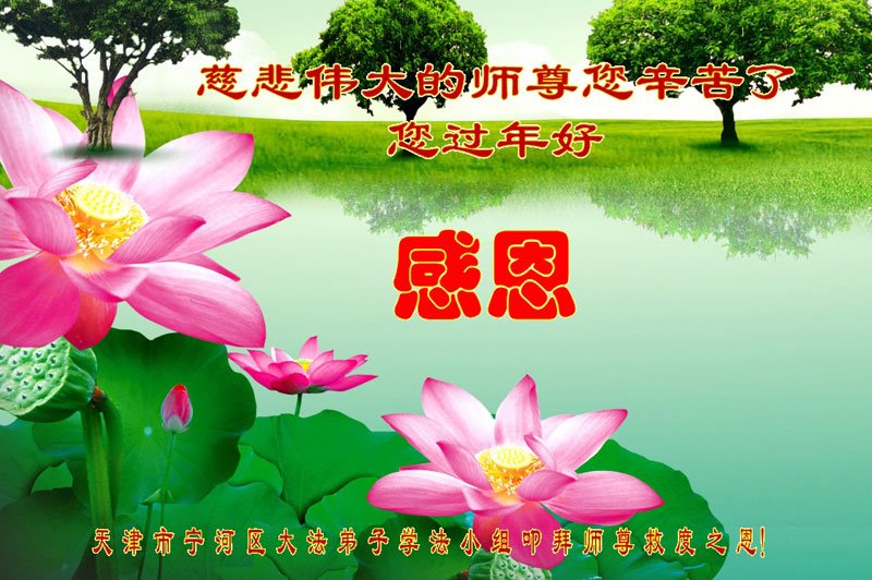 谢谢师父慈悲救度。 天津北辰大法弟子及家人恭祝慈悲伟大的师尊新年快乐!