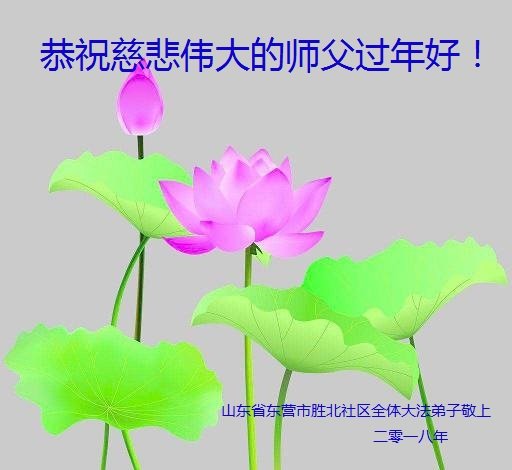 敬谢师尊,救度之恩。 山东威海市环翠区4人学法小组大法弟子敬上。 山东省东营市胜北社区全体大法弟子恭祝师父过年好!