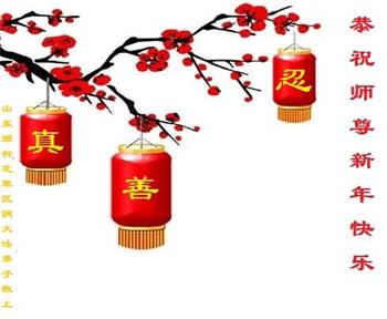 恭祝: 师父新年好! 谢谢师父 师父辛苦了 以感恩的心盼师父早日回国 合十 山东淄博三大法弟子恭祝慈悲伟大的师尊过年好!