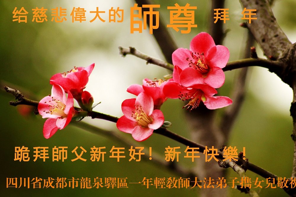 四川省成都市龙泉驿区一年轻教师大法弟子携女儿给慈悲伟大的师尊拜年!
