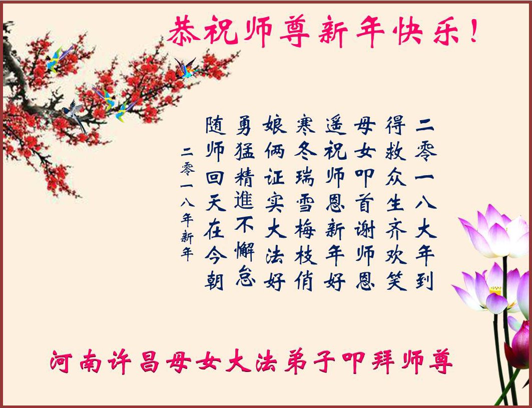 恭祝慈悲伟大的师尊: 新年快乐! 师父您辛苦了! 叶县大法弟子跪拜 河南省商丘大法弟子恭祝师父新年快乐!