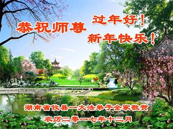 【明慧网二零一八年二月十六日】 湖南省株洲市攸县一大法弟子全家恭祝师尊过年好!