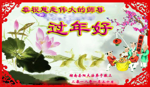 辞旧岁、迎新春,恭祝师尊过年好!弟子隔洋想师尊。 新的一年又来到,我们一定要做好,修好自身,多救众生,做好三件事,兑现弟子的使命,不负师尊慈悲苦度之恩。 叩拜师尊 二零一八年二月九日 湖南岳阳市大法弟子给师尊拜年!