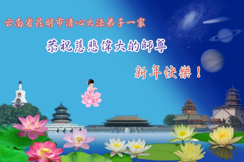 云南省昆明市大法弟子恭祝伟大的师尊新年快乐!