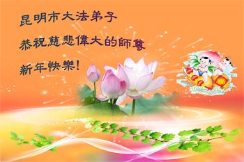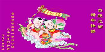 云南昆明市大法弟子恭祝伟大的师尊新年快乐!