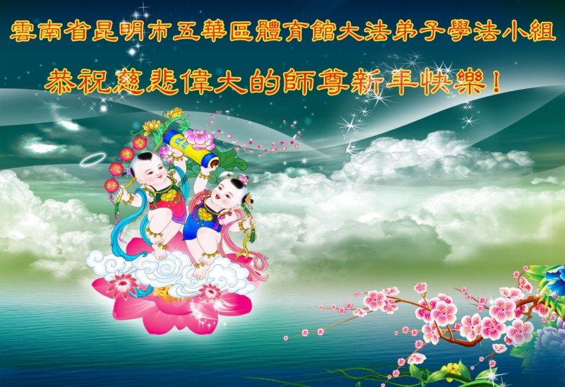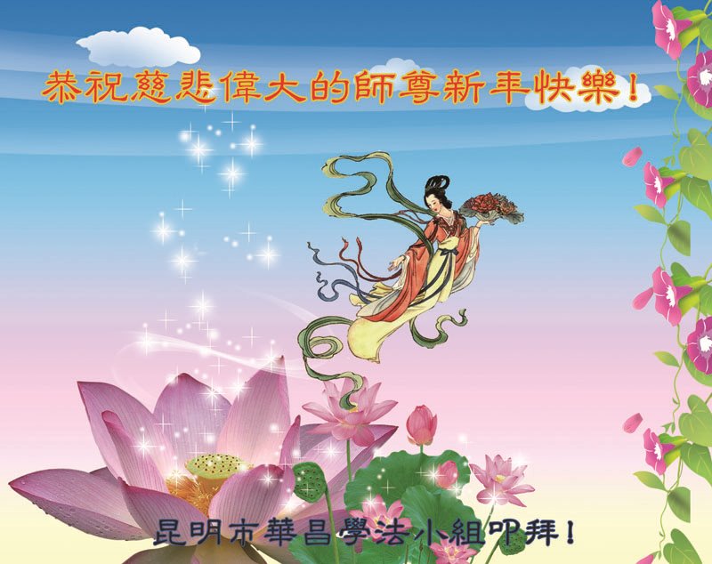 云南昆明市华昌学法小组大法弟子恭祝伟大的师尊新年快乐!