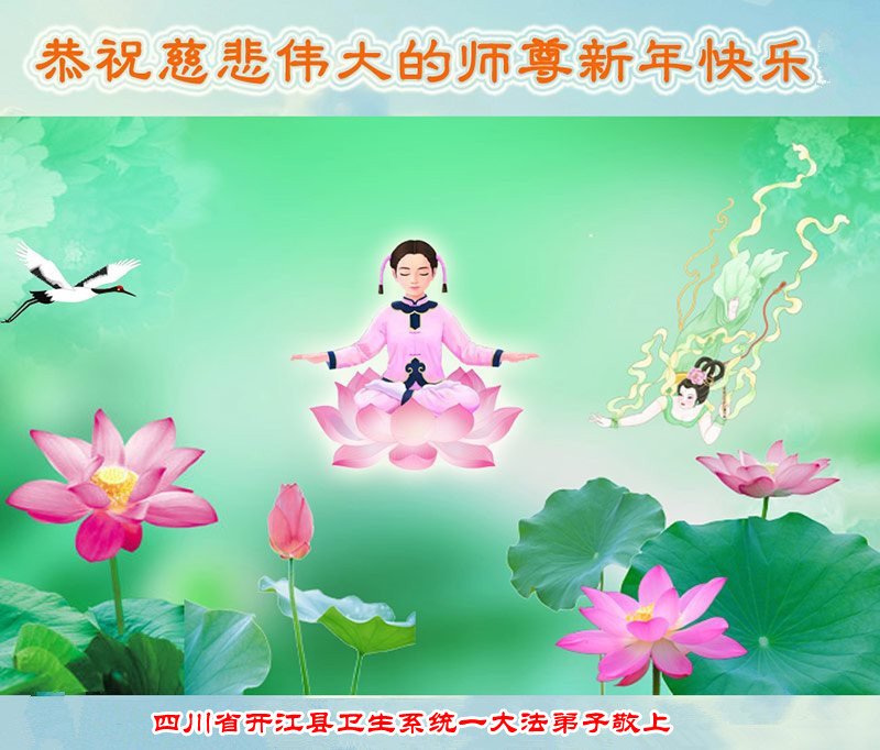 四川省达州市开江县卫生系统一大法弟子恭祝慈悲伟大的师尊新年快乐!