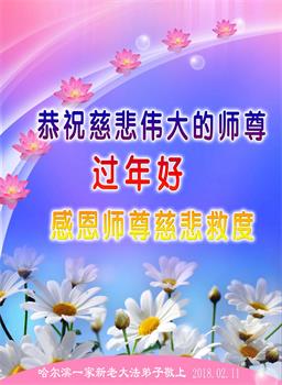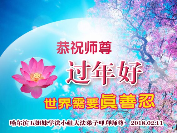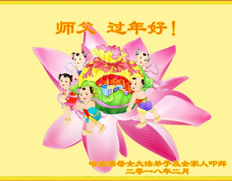 【明慧网二零一八年二月十六日】 黑龙江省哈尔滨母女大法弟子及全家人向师父拜年!师父过年好!感恩师父的慈悲苦度!