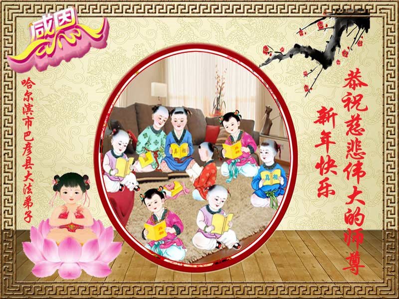 在新年即将来临之际,弟子们恭祝师尊新年好!弟子们道一声:师尊您辛苦了!时间真的太快了,过去的一年弟子们真的是太感恩师尊了!在师尊的慈悲保护下弟子们在救度众生的路上有过喜悦、有过惊心,有过太多太多的不足。在今后的实修中弟子们一定会学好法,向内找,做好三件事,请师尊放心。依兰县全体大法弟子再一次恭祝师尊新年好! 黑龙江省哈尔滨市依兰县一学法小组大法弟子恭祝师尊新年好!