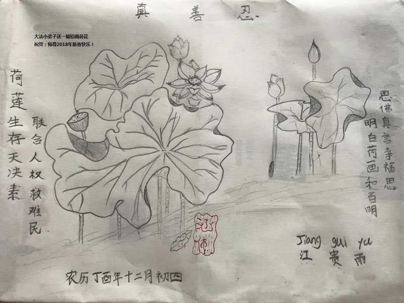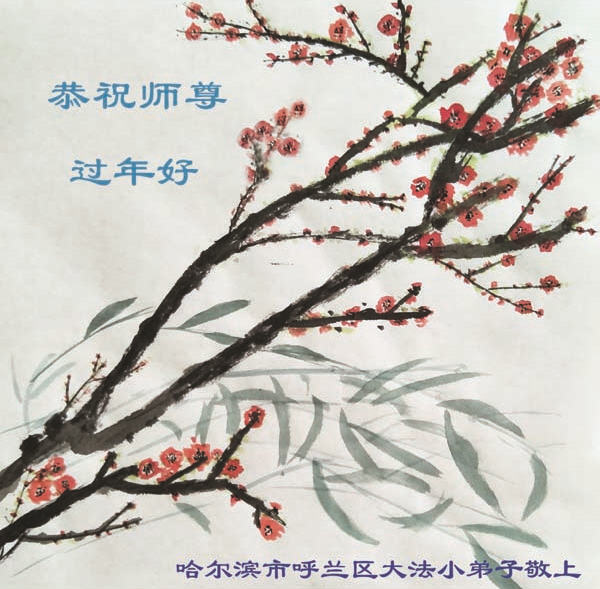 大法小弟子与妈妈合作的国画献给师尊!我们全家大法弟子恭祝师尊过年好! 上海大法小弟子恭祝慈悲伟大的师尊过年好!