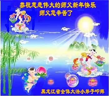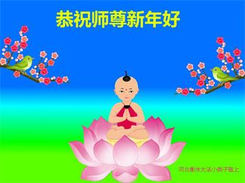 师父您好!弟子非常想念师父,期盼着早日见到师父。弟子虽然年龄小,也要做好三件事,跟着大人同修多学法,提高自己的心性,更好的救度众生,早日见到慈悲伟大的师父!弟子跪拜师尊!双手合十 黑龙江省全体大法小弟子恭祝慈悲伟大的师父新年快乐!