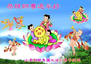 新年快到了,小弟子新缘向师父问好!师父好!小弟子给您拜年了。我爷爷、奶奶是大法弟子,我也成为了一名小弟子。我感受到了大法的神奇与美好,在考试中不会时,我就念法轮大法好,真善忍好,就会了,最后得了最好的成绩。感谢慈悲的师父帮助了小弟子!我要在最后的时间里,学法、多学法、学好法,随师回家。 山东钢铁集团大法小弟子恭祝师尊新年快乐!