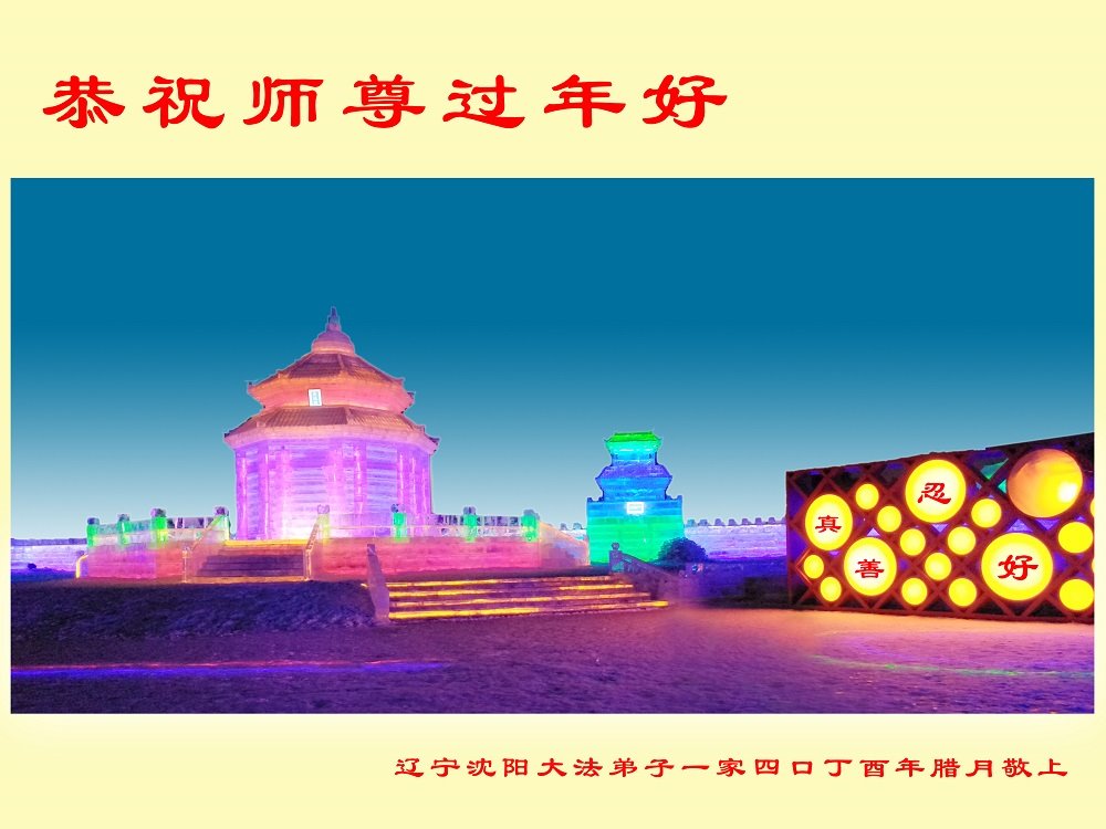 辽宁沈阳大法弟子一家四口丁酉年腊月敬上 辽宁省沈阳大法弟子祝慈悲伟大的师尊过年好!