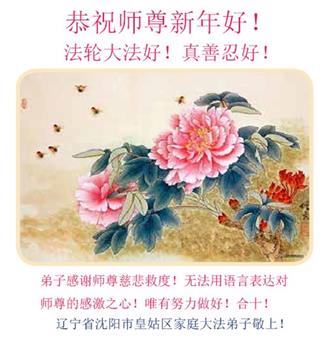 辽宁省沈阳市皇姑区家庭大法弟子恭祝师尊新年好!