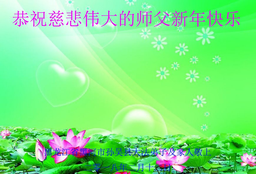 黑龙江省黑河市孙吴县大法弟子及其家人恭祝慈悲伟大的师父新年快乐!