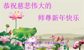 恭祝慈悲伟大的师父新年快乐!黑龙江省黑河市孙吴县世人敬上!我们没有修炼,可是知道法轮大法好,师父在救人,我们一家四口人,在新年来临之际,给师父拜年,恭祝慈悲伟大的师父新年快乐! 黑龙江省双鸭山市宝清县中老年学法小组恭祝慈悲的师尊新年快乐!
