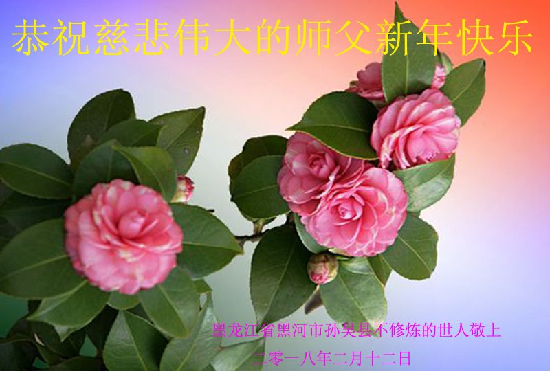 师父过年好!我和我的家人,及爸爸、妈妈、弟弟一家,还有我的公公婆婆,我们一家十二口人,给师父拜年,感谢师父的慈悲,让我们家庭幸福,人人健康,用语言说不尽对师父的感恩。我只有做好三件事,让师父放心。 黑龙江省黑河市孙吴县不修炼的世人恭祝慈悲伟大的师父新年快乐!