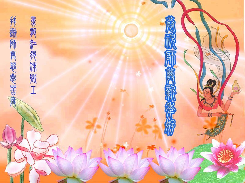 尊敬的师父好!弟子给您拜年!我是从小受益的大法弟子,因为我的姥姥修炼,在我十几岁的时候受荨麻疹病痛折磨、痛苦不堪,吃了好多中药也没有明显效果。这时姥姥告诉我求师尊帮助,我照做了,第二天醒来,我的病真的没有了,荨麻疹治愈了。感谢师父!虽然我末能踏心修炼,但师尊的慈悲加持,我愿放下更多的执着,坚信大法,按“真、善、忍”坚定走下去。再次叩谢师父!弟子然然叩拜! 尊敬的师尊好!师父过年好!在我很小的时候遇到困难,不知该怎么办的时候,我就会在心里默念“法轮大法好,真善忍好。”仿佛这已经成为了我心中的一种信仰,一切困难、一切阻碍都不是问题,我都有勇气去面对,因为我有师父,所以我才会一直顺顺利利、健康的走到现在。我现在已是青年弟子了,我会珍惜与大法的缘份,多学法,回报师恩。弟子桐桐叩拜! 黑龙江大兴安岭加格达奇全体大法弟子给师父拜年!恭祝慈悲的师尊过年好!