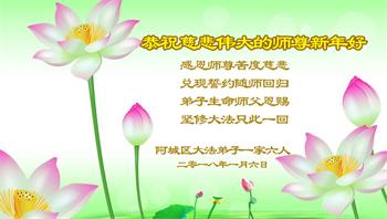 师尊过年好!我们是哈尔滨市一学法小组全体同修问一声师尊过好!师尊辛苦了! 在新的一年里,弟子一定做好三件事,多救人。 黑龙江省哈尔滨市五常市拉林镇一大法弟子与家人恭祝师尊新年好!