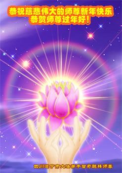 敬爱的师尊,是您把我们从苦海中拯救出来,是您巨大的承受与付出,给弟子与众生延续着分分秒秒,使我们走过了又一个年头。我们一定不负师恩,做好三件事,多学法,修好自己,相互配合好,多救人,让师父少操心,多欣慰。 再次恭祝师尊新年快乐! 四川省南充市多名大法弟子恭祝慈悲伟大的师尊新年快乐!