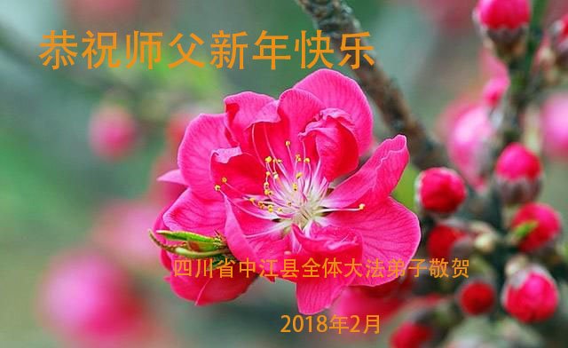 师父是您在末劫最后时刻把大法洪传,将坏灭苍宇力挽,是您的无量慈悲才使败坏的生命免遭淘汰,是您的慈悲救度与呵护才使弟子在修炼的路上平安走到今天,是您的巨大付出与承受,才换来苍宇更新万物兴盛,众生得救。 在这正法即将结束的最后时刻,弟子唯有走好师父安排的每一步,修好自己,配合整体,做好三件事,正念正行,兑现誓言,跟师父回家。 过年了,师父好。 普天庆,放鞭炮。 大法徒,齐声颂。 法轮大法好! 发正念,讲真相。 世人醒,烂鬼亡。 红魔散,红墙倒。 邪恶徒,无处逃。 四川遂宁市大法弟子跪拜师尊 二零一八年二月九日 四川省德阳市中江县大法弟子恭祝师父新年快乐!