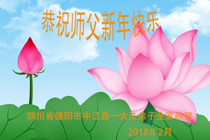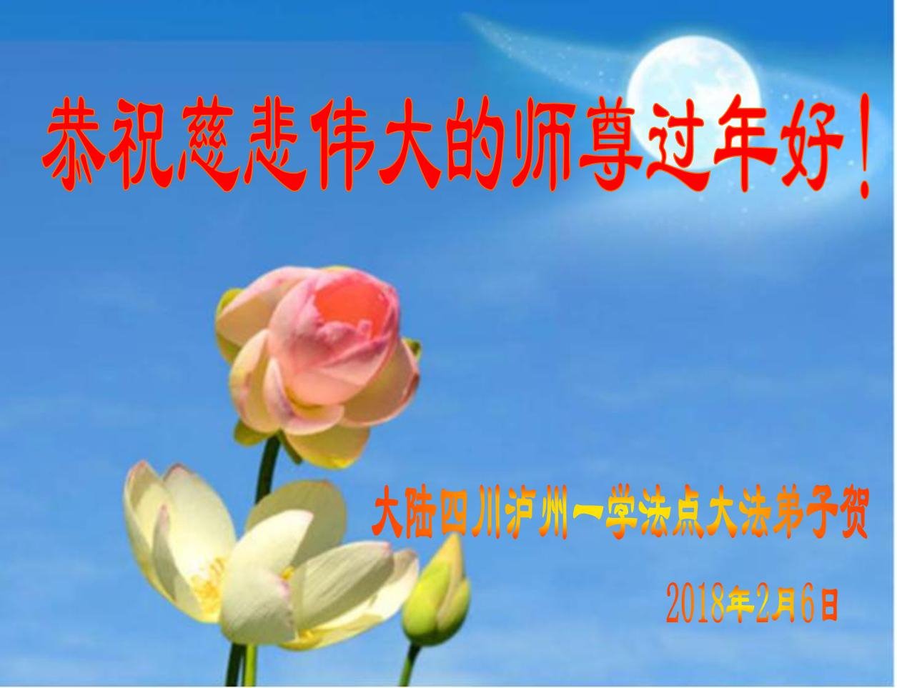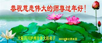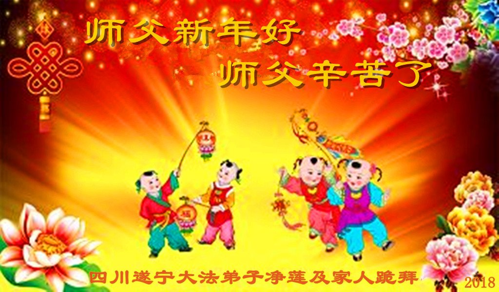四川泸州一家庭学法点大法弟子敬贺 2018年2月8日 四川遂宁全体大法弟子恭祝师父新年快乐!