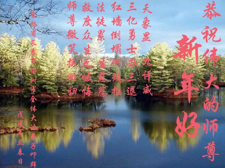 问候师父过年好 浩荡师恩无法报 问候师父过年好 精進实修做三事 助师正法果要高 吉林省长春市绿园区大法弟子恭祝师尊新年好!
