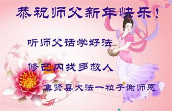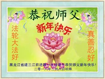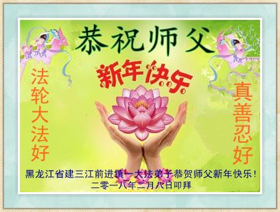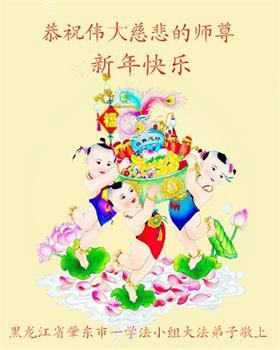 感恩师尊救度 沐浴师恩浩荡 证实法中做好 学法修心内找 尽心尽责救人 少让师父操心 新年到念师尊 遥祝师父快乐! 惟愿师尊笑! 饶河所有大法弟子向师父拜年了! 黑龙江一大法弟子恭祝伟大的师尊新年好!