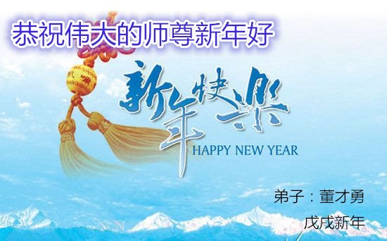 在狗年新春佳节来临之际:恭祝慈悲伟大的恩师李洪志先生新春快乐! 感谢师父将伟大的法轮大法传给世人! 弟子在大陆盼望恩师早日回到祖国与弟子们团聚! 叩拜师父! 黑龙江省七台河市金融界大法弟子 黑龙江省七台河市大法弟子恭祝师尊新春快乐!