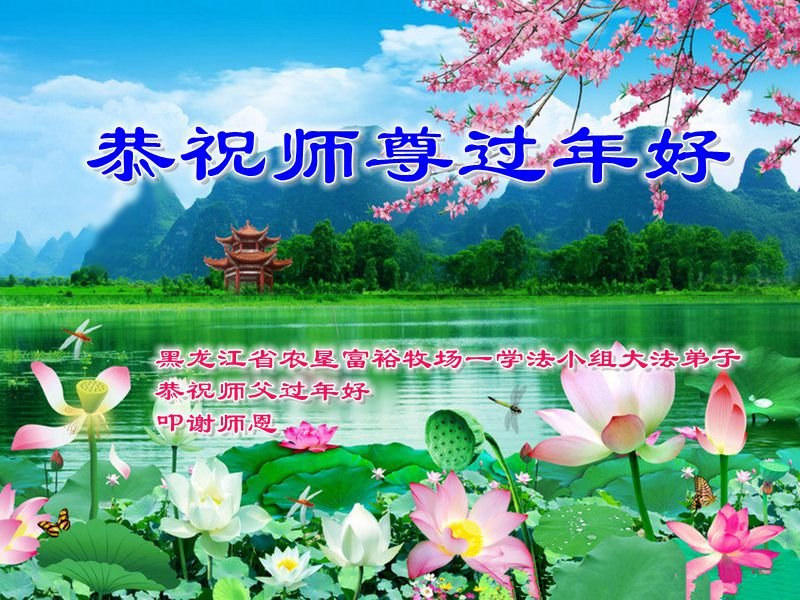 恭祝师尊过年好! 黑龙江省农垦富裕牧场一学法小组大法弟子恭祝师尊过年好!