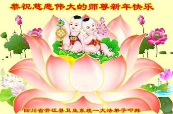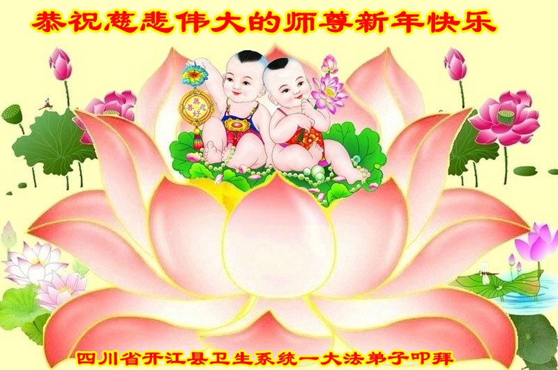 四川省达州市开江县卫生系统一大法弟子恭祝慈悲伟大的师尊新年快乐!