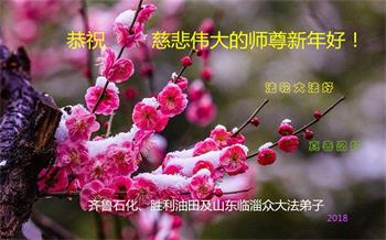 【明慧网二零一八年二月十六日】 齐鲁石化、胜利油田及山东临淄众大法弟子恭祝慈悲伟大的师尊新年好!师父您辛苦了!